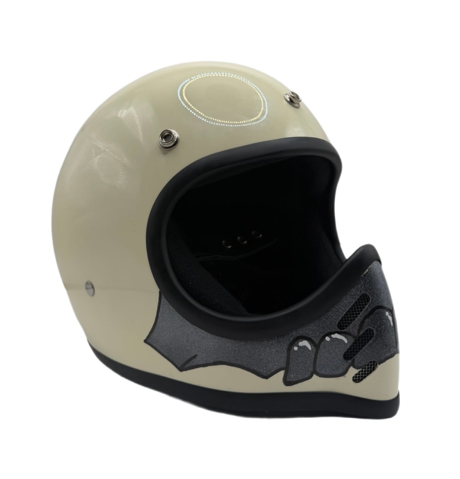 ホワイトベースにブラックのファイヤーパターンを組み合わせ、フロントの口元には牙を描くことで、正面から見た時の迫力ある表情を実現。